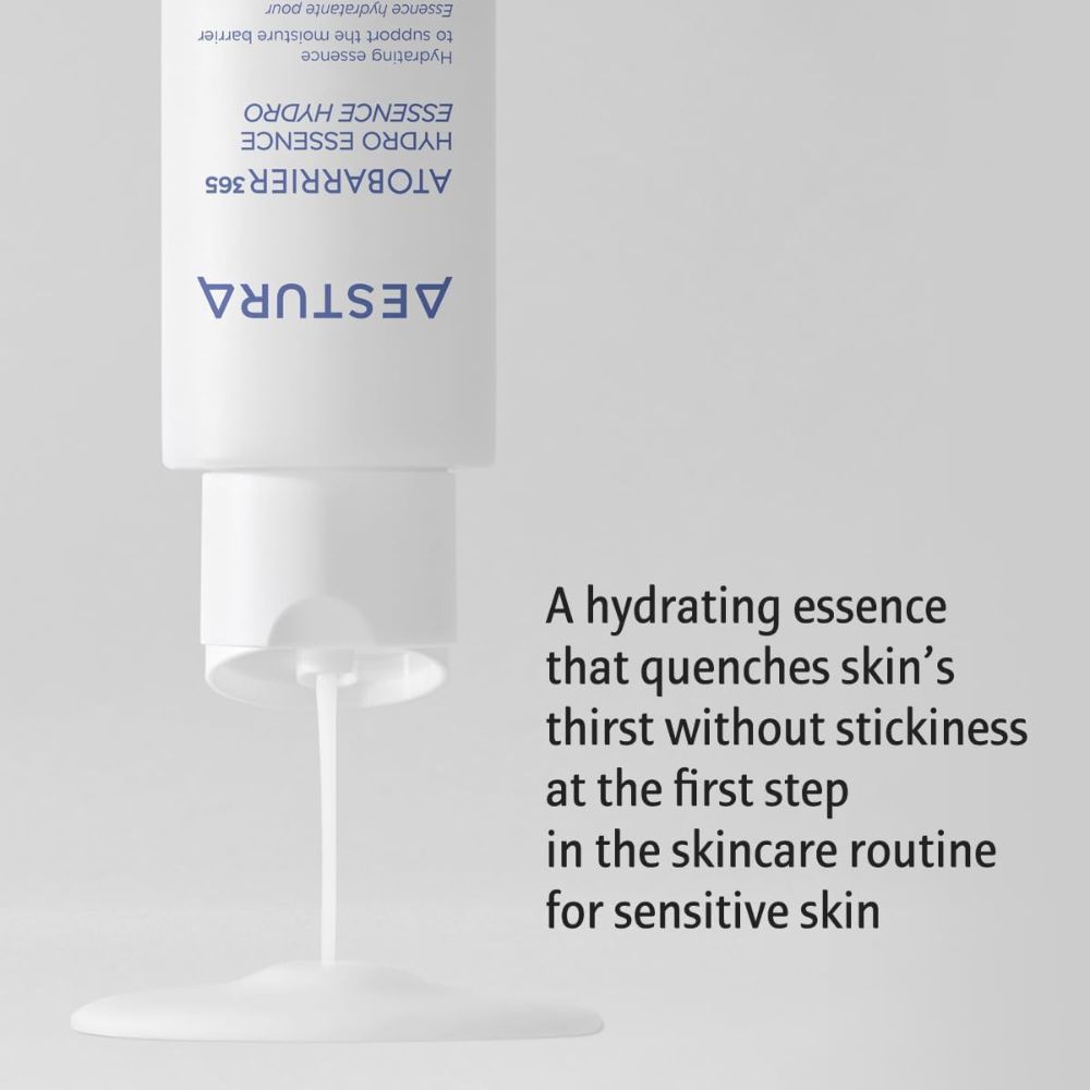 AESTURA Atobarrier 365 Hydro Essence este o esență hidratantă concepută pentru pielea uscată și deshidratată, inclusiv pentru tenul sensibil. Formula are o textură lăptoasă, lejeră, care se aplică imediat după curățare și se absoarbe rapid, fără senzație lipicioasă sau peliculă grasă. Produsul este gândit pentru a calma senzația de piele care ține și pentru a oferi hidratare încă de la primul pas al rutinei. Compoziția susține pielea cu factori de hidratare inspirați de modul în care aceasta se hidratează în mod natural, oferind confort și un aspect mai suplu.