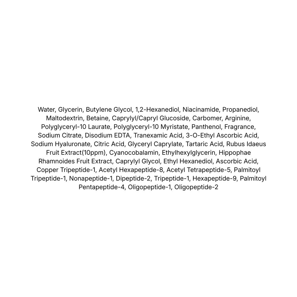 Copper Tripeptide-1, Acetyl Hexapeptide-8, Acetyl Tetrapeptide-5, Palmitoyl Tripeptide-1, Nonapeptide-1, Dipeptide-2, Tripeptide-1, Hexapeptide-9, Palmitoyl Pentapeptide-4, Oligopeptide-1, Oligopeptide-2 – Complex de peptide care susține fermitatea pielii și contribuie la netezirea liniilor fine.