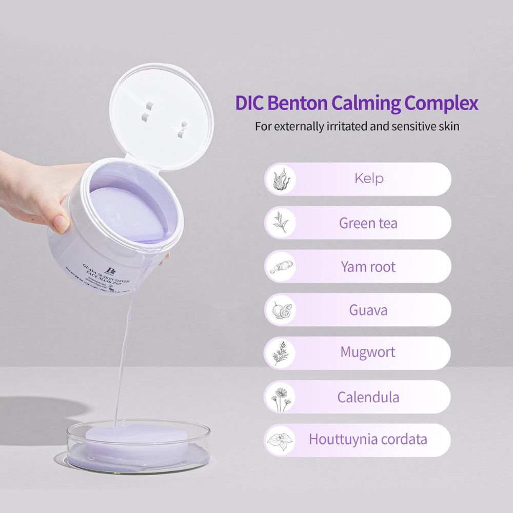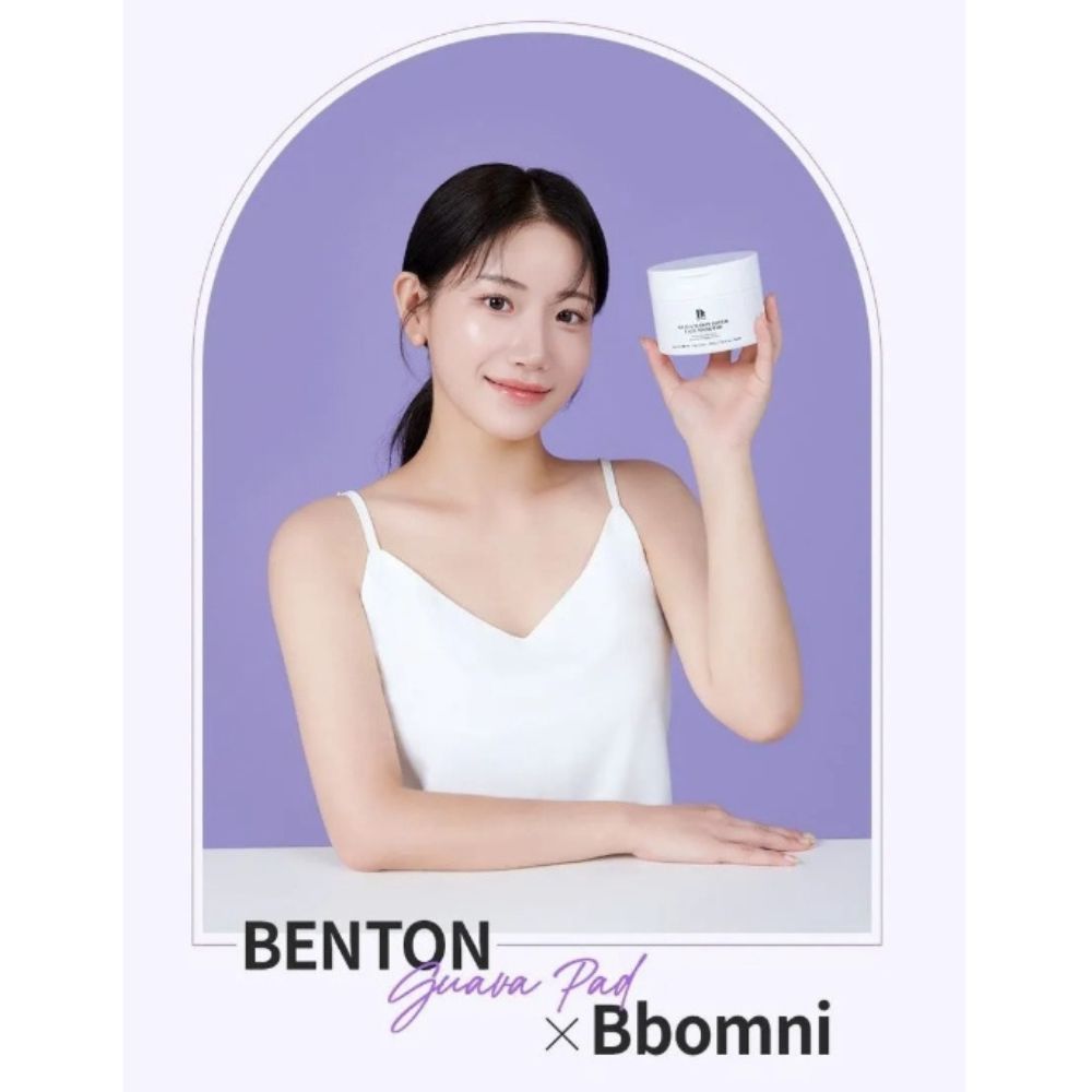 Benton Guava 70 Skin Toner Face Mask Pad este un produs formulat pentru a calma pielea ternă, aspră sau iritată și pentru a susține un aspect mai neted și mai luminos al tenului. Dezvoltat în colaborare cu influencerul coreean de beauty Bbomni, produsul combină extracte vegetale atent selecționate cu o textură lejeră, potrivită pentru utilizare zilnică. Dischetele pot fi aplicate direct pe piele sub formă de mască și oferă hidratare, confort și o senzație imediată de prospețime.