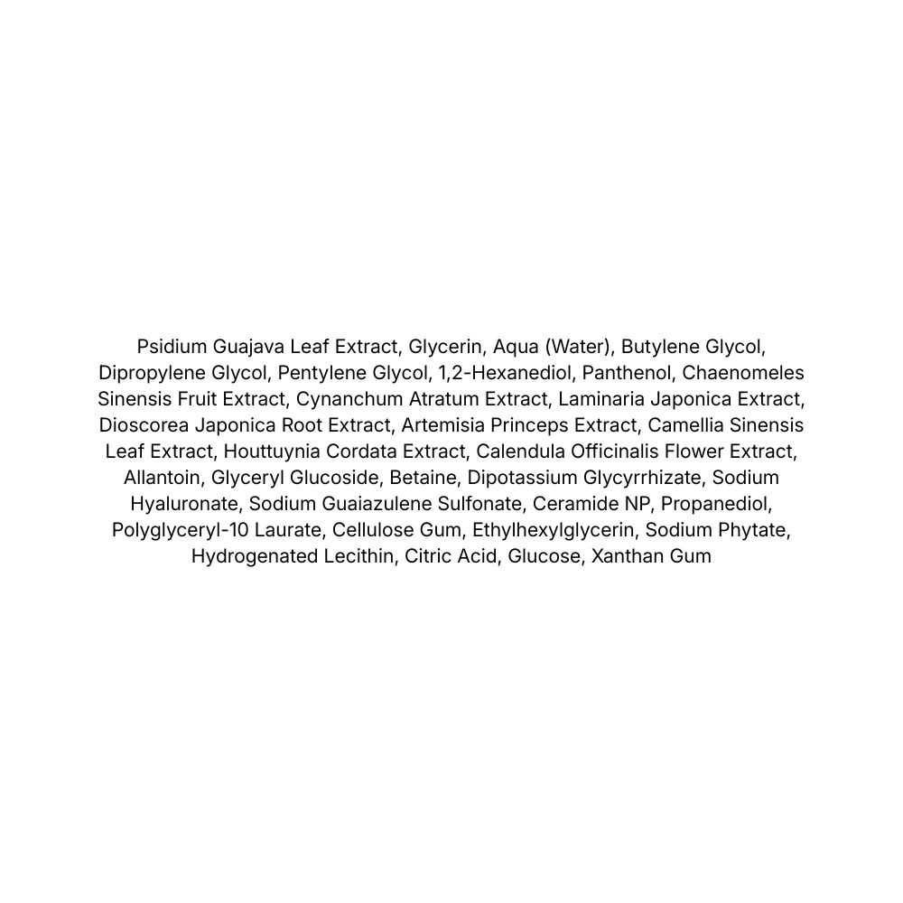 Extract din frunze de guava (Psidium Guajava Leaf Extract) – ingredient cu rol antioxidant, cunoscut pentru efectele calmante și pentru susținerea confortului pielii.