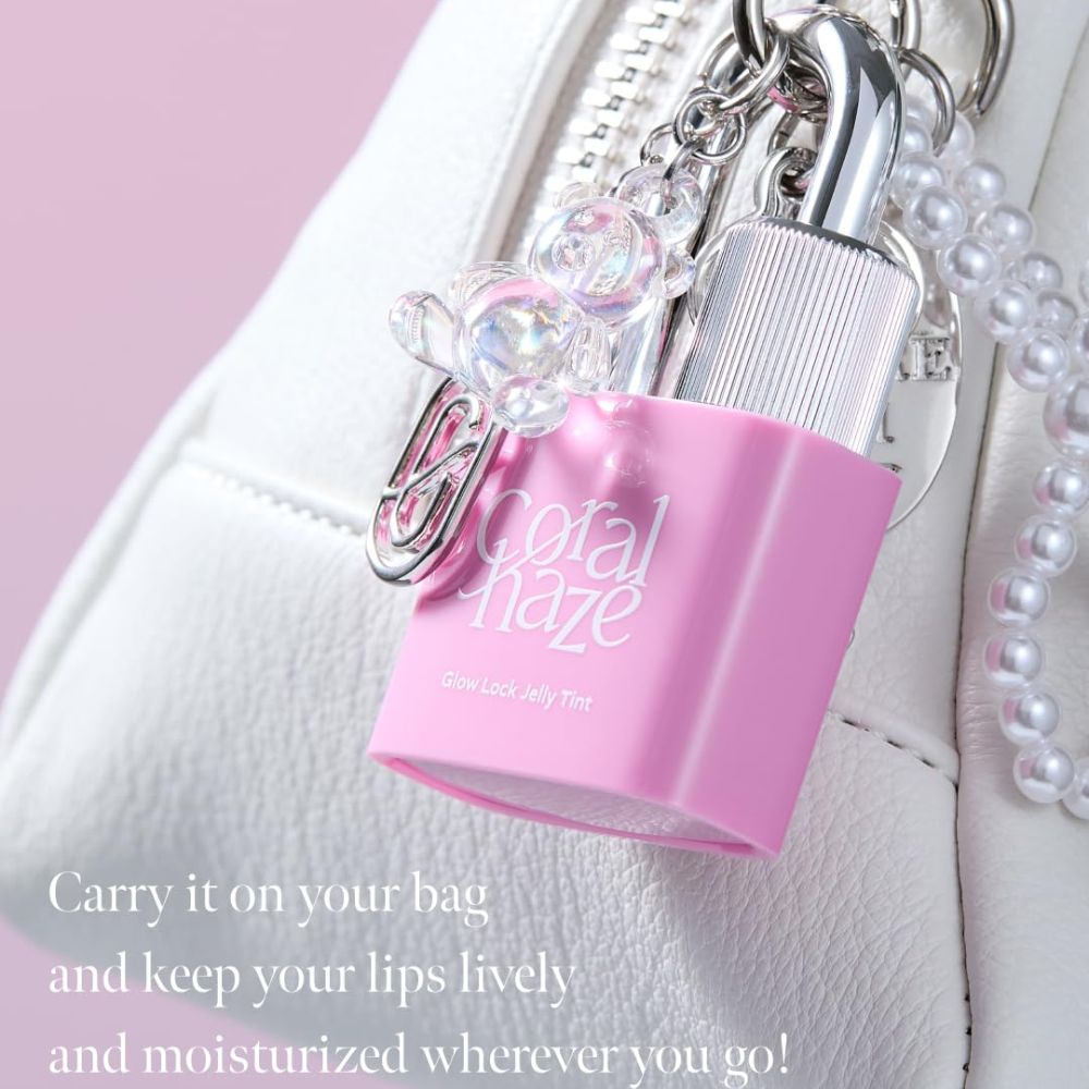 Coralhaze Glow Lock Jelly Tint este un tint cu textură jelly care lasă pe buze un finish intens lucios, perfect pentru un look proaspăt și atrăgător. Formula sa oferă culori cu tonuri variate, de la nuanțe calde și vibrante până la opțiuni reci și rafinate. Produsul se distinge prin hidratarea de durată, precum și prin ambalajul în formă de lacăt, creat pentru a fi purtat cu ușurință ca accesoriu de tip breloc.