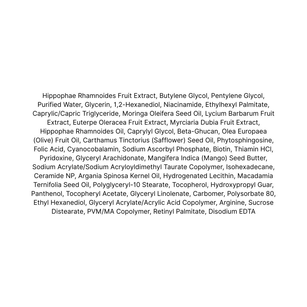Hippophae Rhamnoides Fruit Extract (cătină, 69%) – puternic antioxidant, bogat în vitamina C, uniformizează și luminează pielea.
