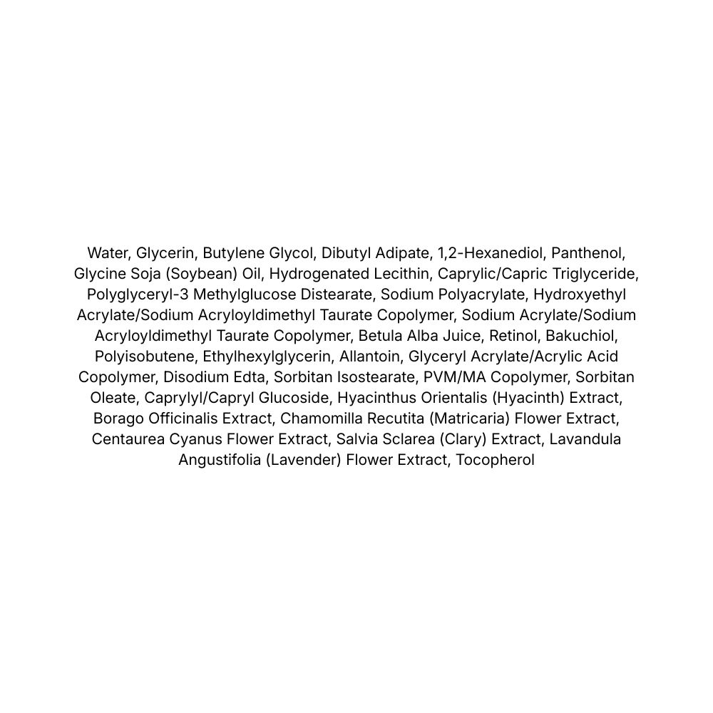 Retinol 0.1% – un derivat al vitaminei A cunoscut pentru capacitatea de a accelera regenerarea celulară. Ajută la reducerea ridurilor, la netezirea pielii și la diminuarea porilor.