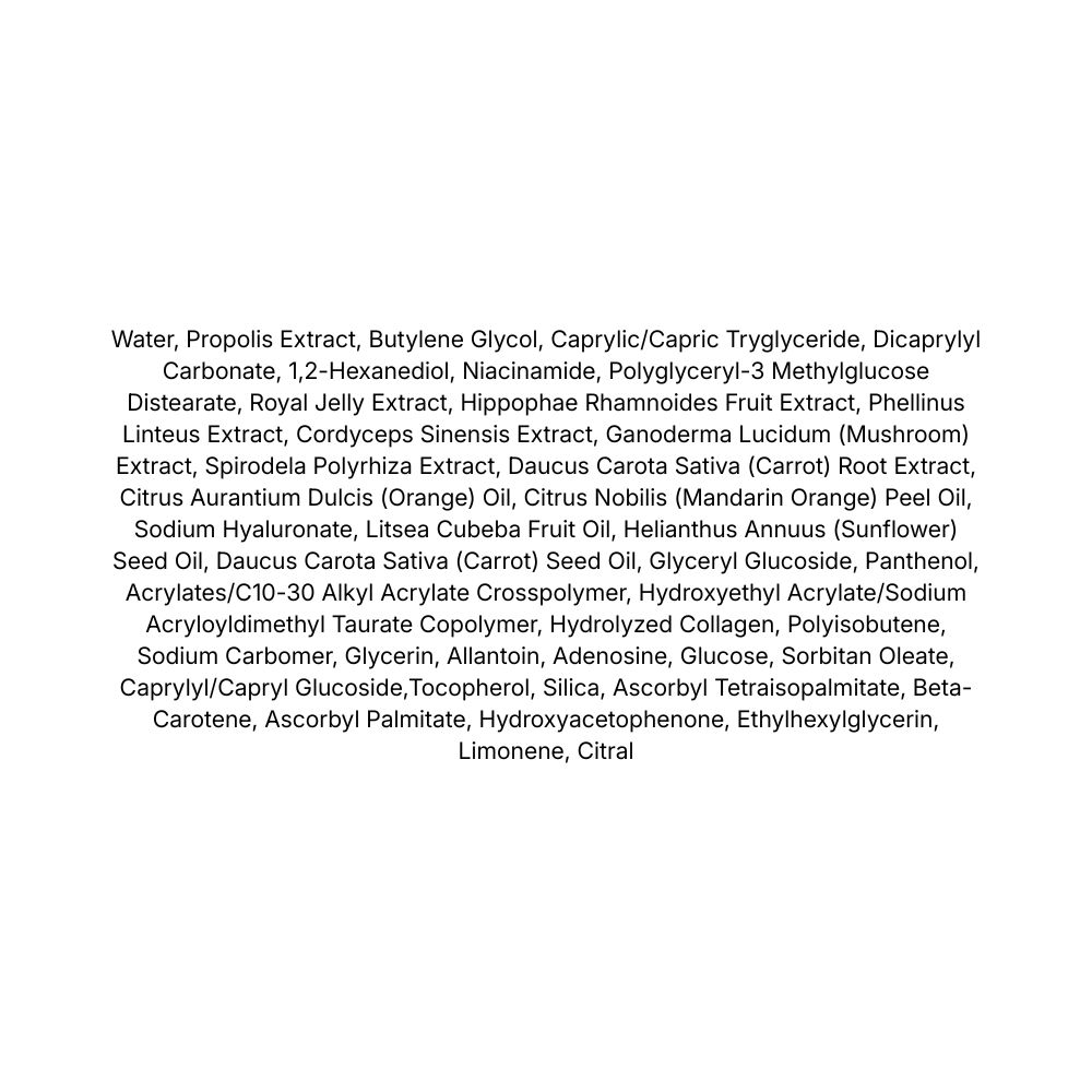 Extract de propolis – ingredient cu proprietăți antioxidante și calmante, ajută la revitalizarea pielii terne și la protejarea împotriva factorilor externi.