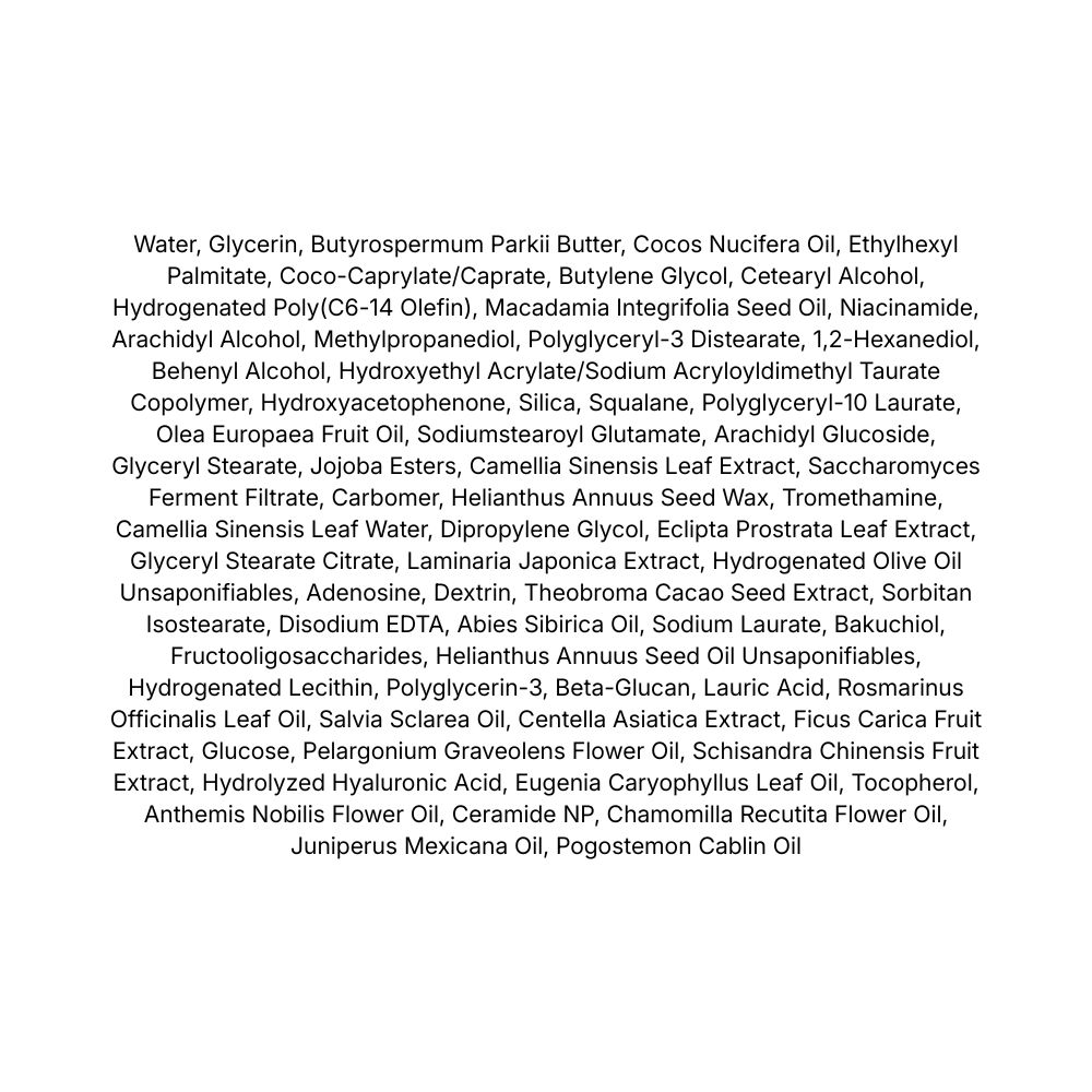 Complex de ceai fermentat (Camellia Sinensis Leaf Extract, Camellia Sinensis Leaf Water, Saccharomyces Ferment Filtrate) – bogat în probiotice, vitamina B și nutrienți, ajută la susținerea imunității pielii și la eliminarea toxinelor.