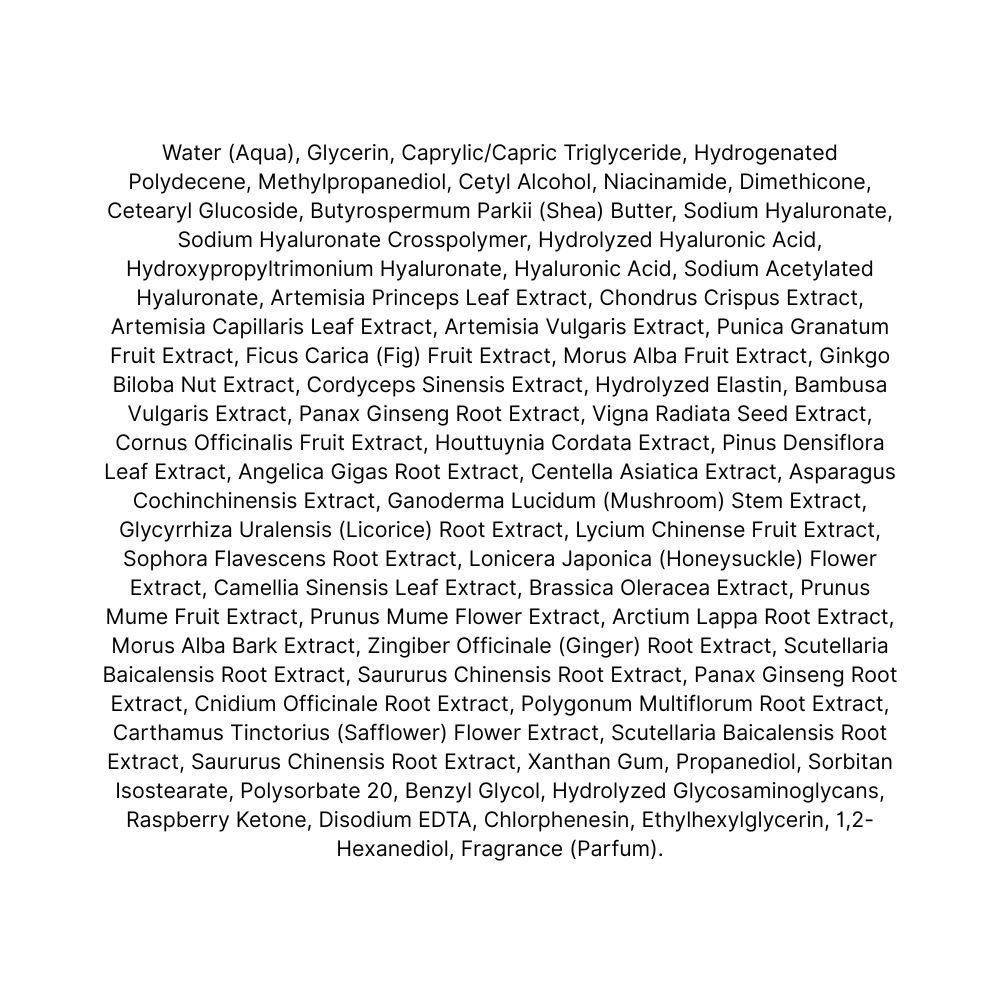 Ingredientul principal, acidul hialuronic, este recunoscut pentru capacitatea sa excepțională de a atrage și reține apa în piele, oferind hidratare de lungă durată. Formula include 8 tipuri de acid hialuronic, fiecare cu dimensiuni moleculare diferite, ce pătrund în straturile profunde ale pielii, menținând-o suplă și catifelată.