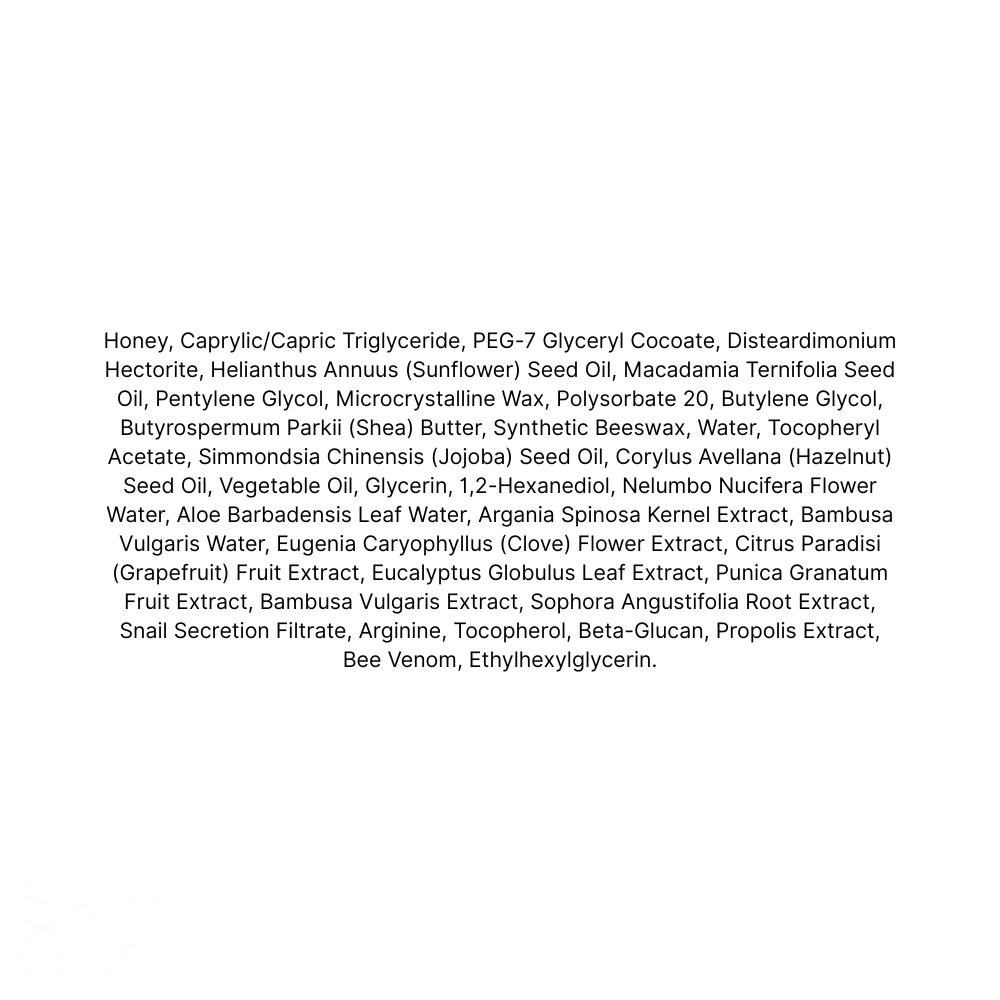 Miere naturală (38,7%) – Ingredient vedetă cu proprietăți antibacteriene, antioxidante și hidratante. Susține regenerarea celulară și menține pielea moale și netedă.
