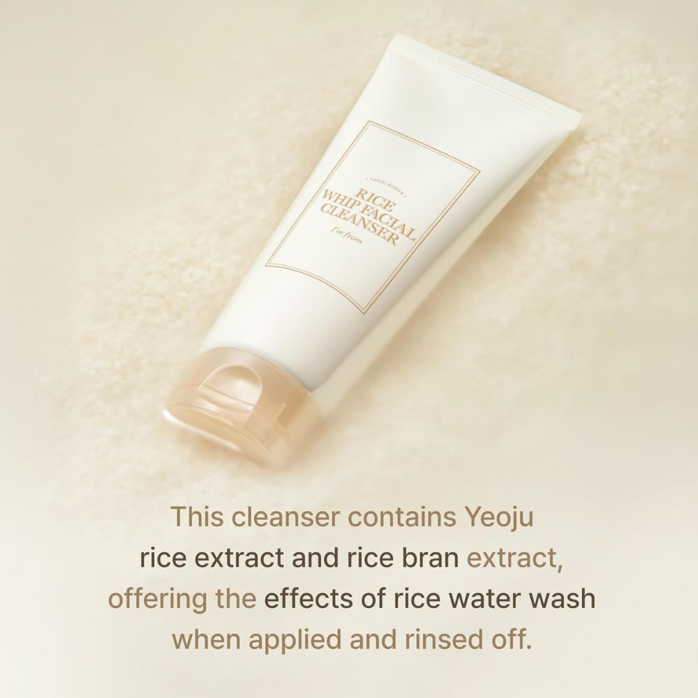 I’m from Rice Whip Facial Cleanser este un gel de curățare facială cu textură aerată, formulat pentru a îndepărta eficient impuritățile zilnice, reziduurile de protecție solară și machiajul de bază, fără a compromite confortul pielii. Formula sa se bazează pe extracte de orez provenite din Yeoju, Coreea, o regiune recunoscută pentru calitatea orezului, păstrând nutrienții prin tehnologia Freeze-Thaw, care limitează degradarea ingredientelor active. Spuma densă și elastică curăță în profunzime, lăsând pielea curată, moale și hidratată după fiecare utilizare. Produsul este testat clinic pentru iritații, fiind potrivit pentru utilizarea zilnică.