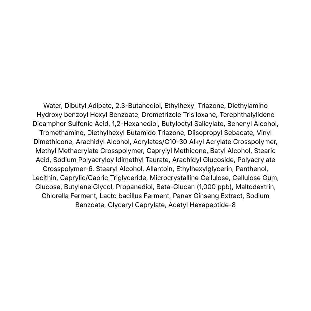 Acest produs este un SPF chimic (organic), formulat cu filtre moderne și fotostabile. Conține filtre precum Ethylhexyl Triazone, Diethylamino Hydroxybenzoyl Hexyl Benzoate, Drometrizole Trisiloxane și Terephthalylidene Dicamphor Sulfonic Acid, care oferă protecție eficientă atât împotriva razelor UVB, cât și UVA. Formula asigură protecție largă, fără efect de albire.