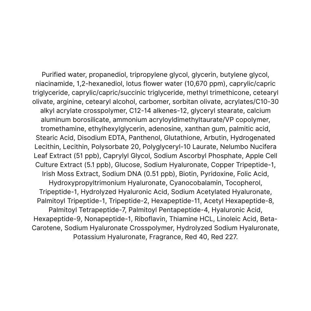 PDRN (sodium DNA): stimulează regenerarea celulară, previne formarea ridurilor și menține elasticitatea cutanată.