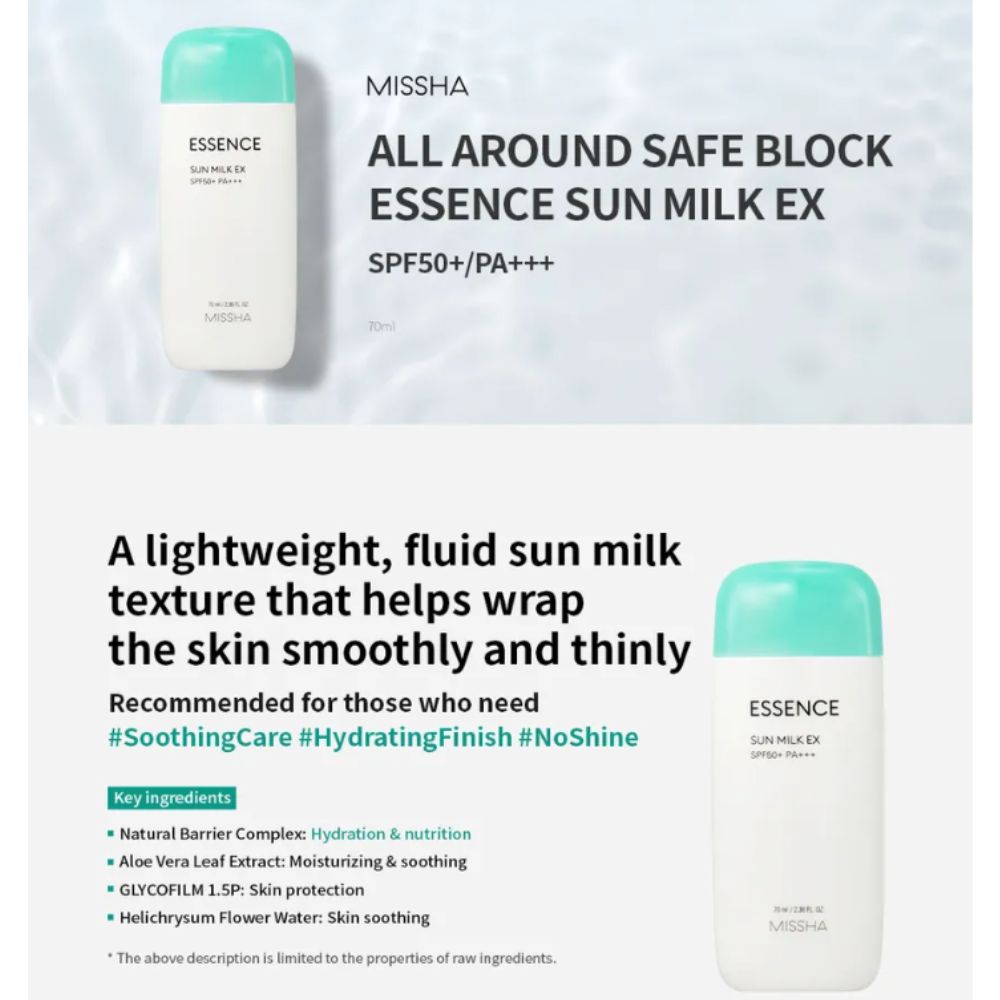 Ingrediente active Missha All Around Safe Block Essence Sun Milk EX SPF50+ PA+++