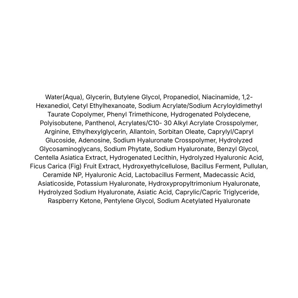• Complex de 11 tipuri de acid hialuronic – contribuie la hidratarea pielii pe mai multe niveluri și ajută la menținerea apei în piele.