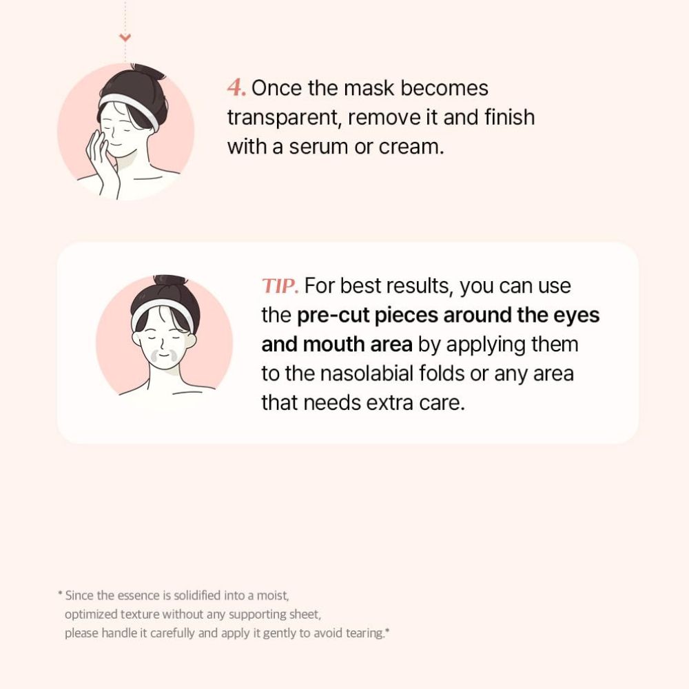 - Îndepărtează masca și masează ușor excesul de esență în piele.