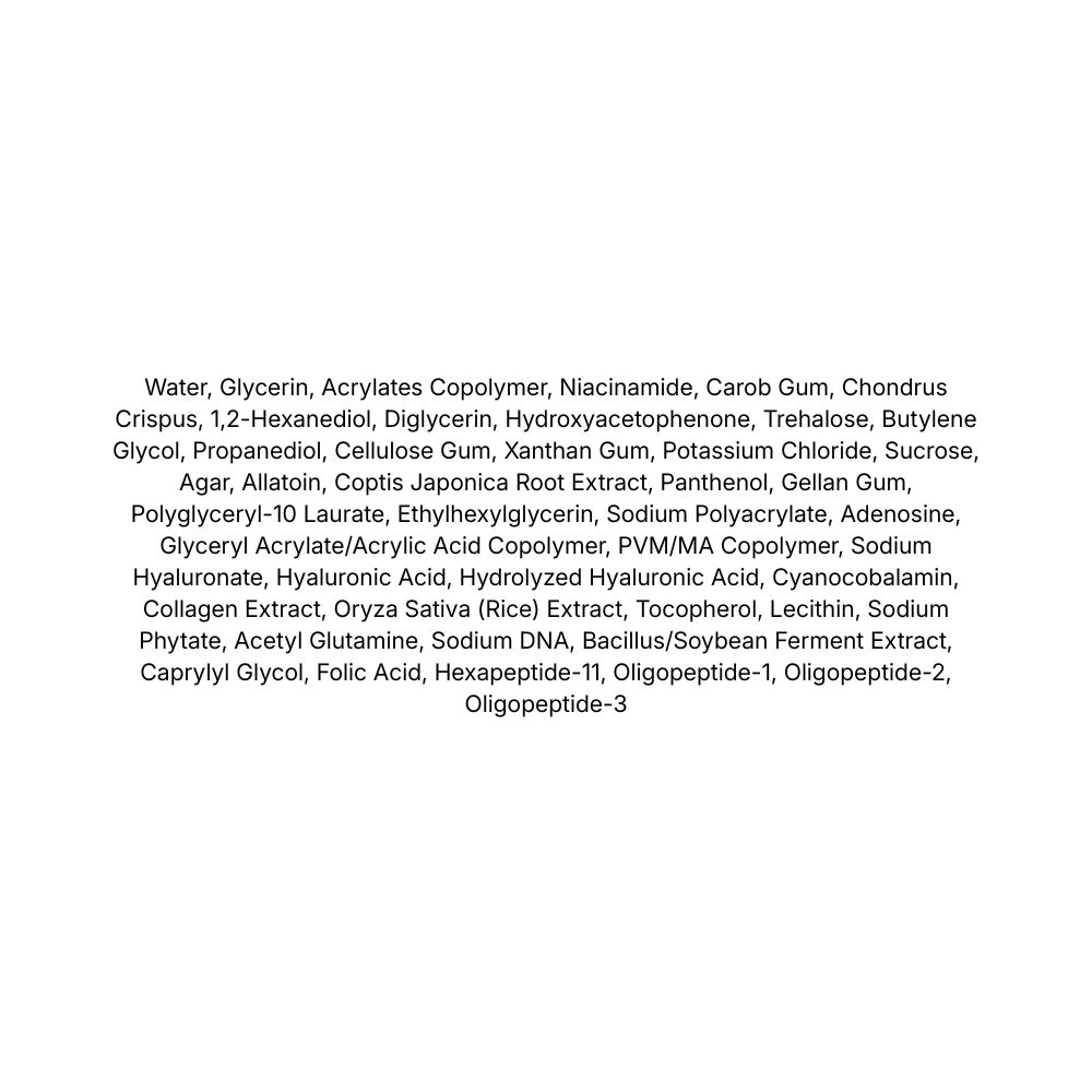 • Oryza Sativa (Rice) Extract + Sodium DNA (PDRN vegetal) – ajută la revitalizarea pielii și la menținerea unui aspect plin și luminos.