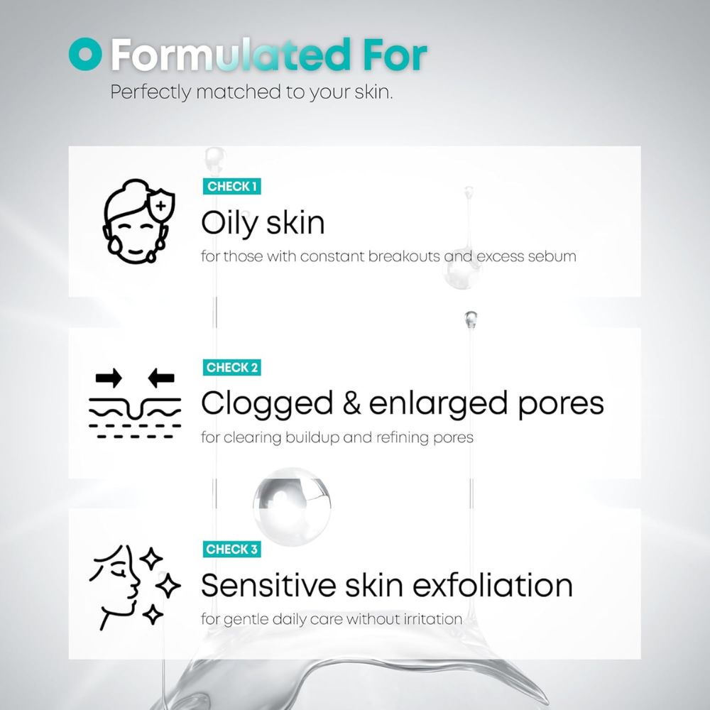 Acest ser exfoliant cu acid salicilic este o alegere potrivită pentru persoanele care își doresc o piele mai curată, echilibrată și calmă, fiind ideal în rutina de îngrijire dedicată tenului acneic și gras.