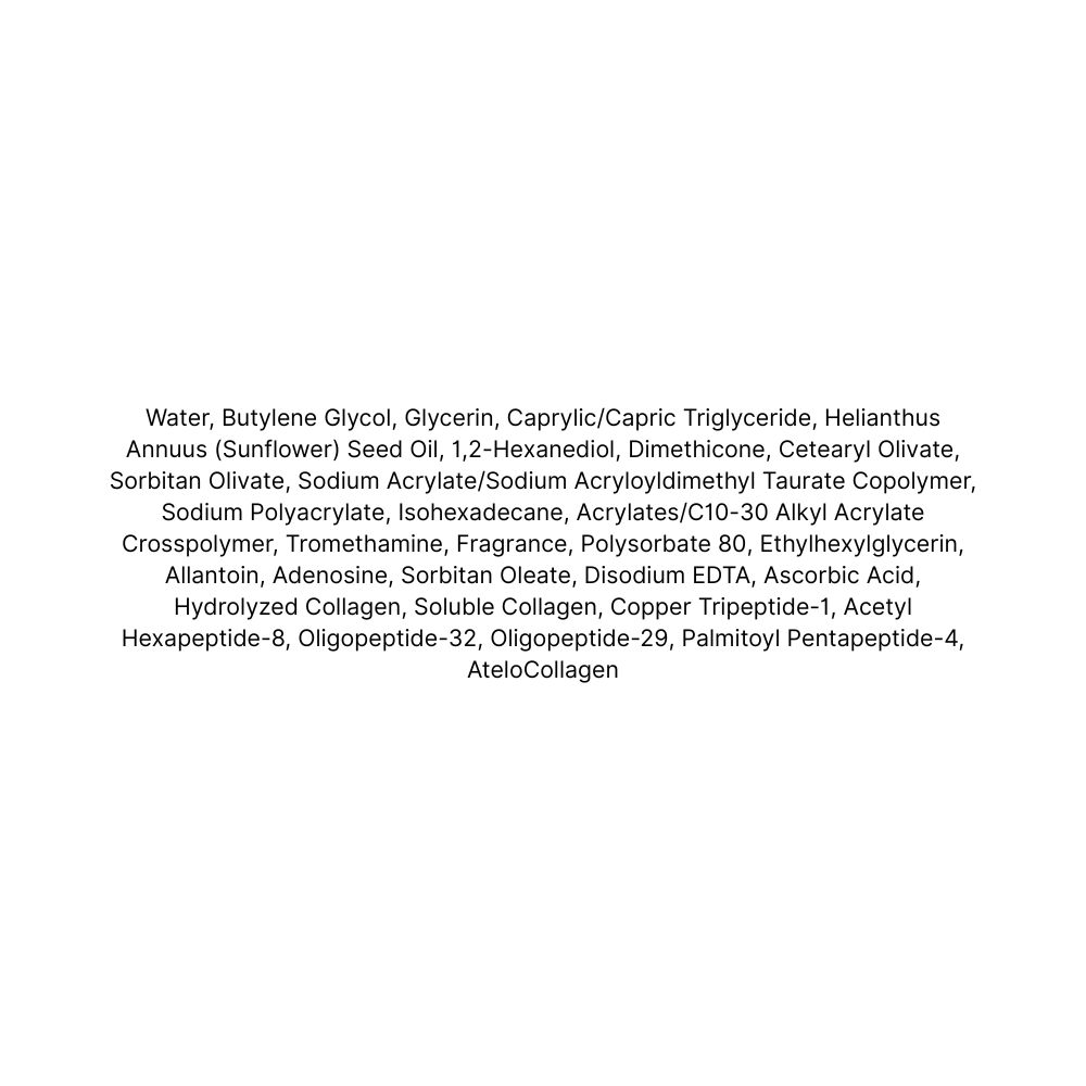 Peptide (Copper Tripeptide-1, Acetyl Hexapeptide-8, Oligopeptide-32, Palmitoyl Pentapeptide-4) – ajută la stimularea producției de colagen și elastină, oferind un efect de lifting și netezire.
