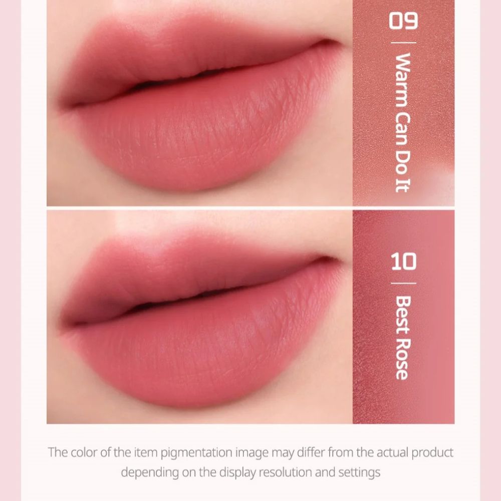 Această colecție se remarcă prin formula lejeră, nuanțele versatile și finisajul impecabil, transformând aplicarea machiajului într-o experiență intuitivă și plăcută. Acest tint mat coreean aduce echilibru între confort, durabilitate și estetică, oferind buzelor un aspect catifelat și modern.