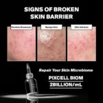 PURCELL Pixcell Biom™ 2Billion/mL este un ser concentrat cu probiotice, formulat pentru a susține bariera naturală a pielii și pentru a îmbunătăți textura cutanată. Formula conține un procent ridicat de fermenți lactici, având o textură ușor vâscoasă, care se absoarbe rapid în piele. După aplicare, tenul rămâne neted, suplu și confortabil. Produsul este testat clinic și poate fi utilizat pe toate tipurile de ten, inclusiv pe ten sensibil sau predispus la acnee.