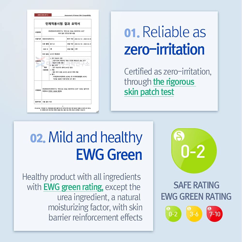 Formula a fost testată dermatologic, cu test de iritație cutanată finalizat, fiind confirmată ca non-iritantă. Rezultatele clinice indică retenție a hidratării timp de 48 de ore și ameliorare imediată a descuamării.