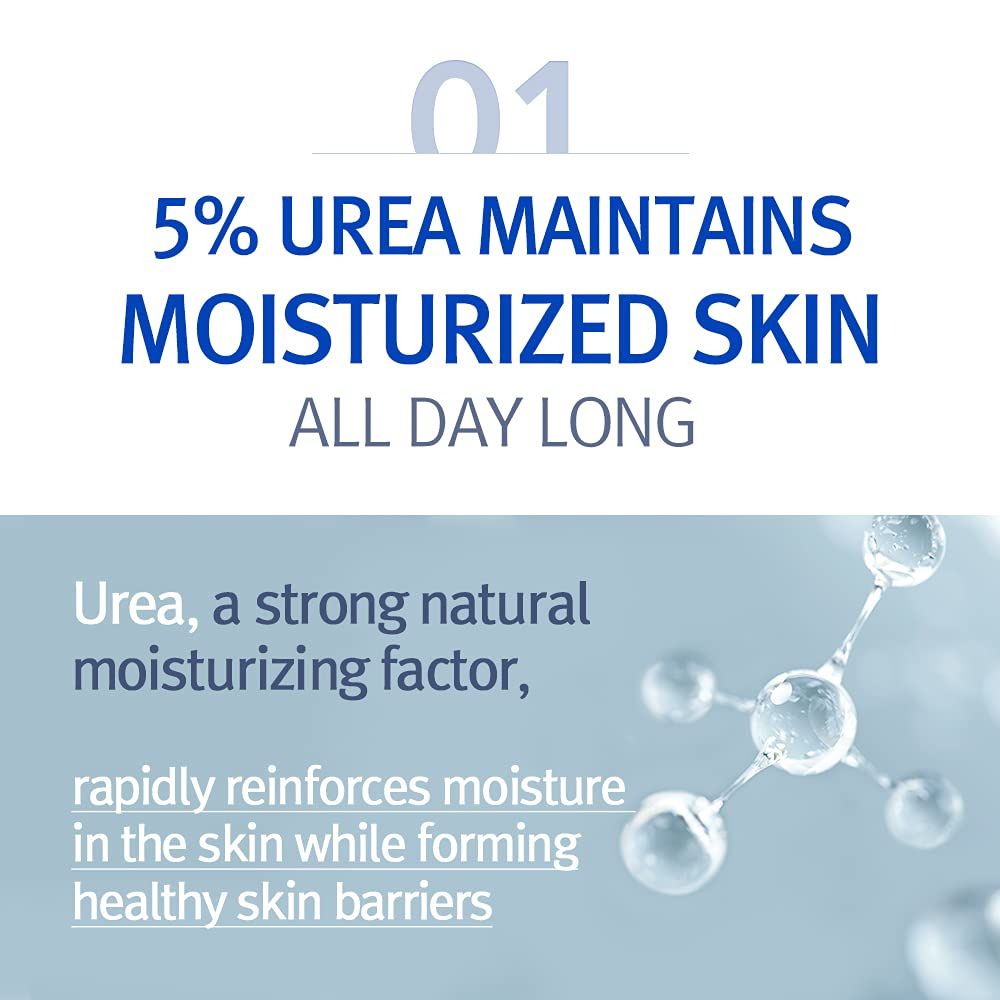 Urea (5%) – factor natural de hidratare (NMF) cu rol umectant puternic. Atrage apa în profunzimea pielii și ajută la menținerea hidratării până la 48 de ore. Reduce descuamarea, netezește zonele aspre și susține formarea unei bariere cutanate mai rezistente.