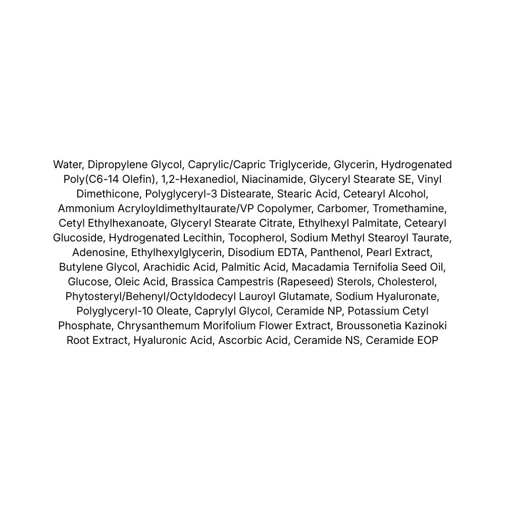 Pearl extract – aduce luminozitate naturală și un aspect revitalizat.