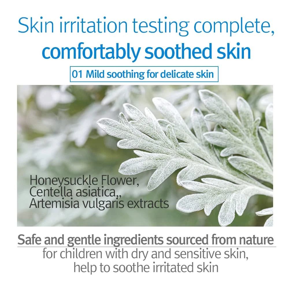 Calmare și reducerea iritațiilor cu extracte din Centella Asiatica, ceai verde, Artemisia și flori de caprifoi.