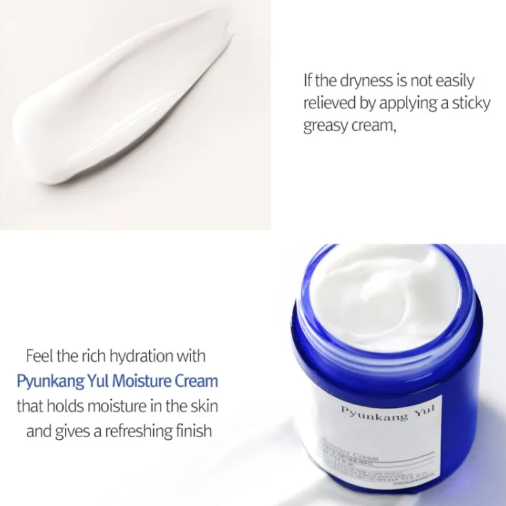 Pyunkang Yul Moisture Cream este o cremă hidratantă intensă, creată pentru a echilibra nivelul optim de umiditate al pielii și pentru a calma sensibilitatea cutanată. Formula sa ușoară, fără parfum și coloranți artificiali, este ideală pentru toate tipurile de piele. Textura catifelată se absoarbe rapid, oferind o senzație de confort imediat, fără efect gras sau lipicios.