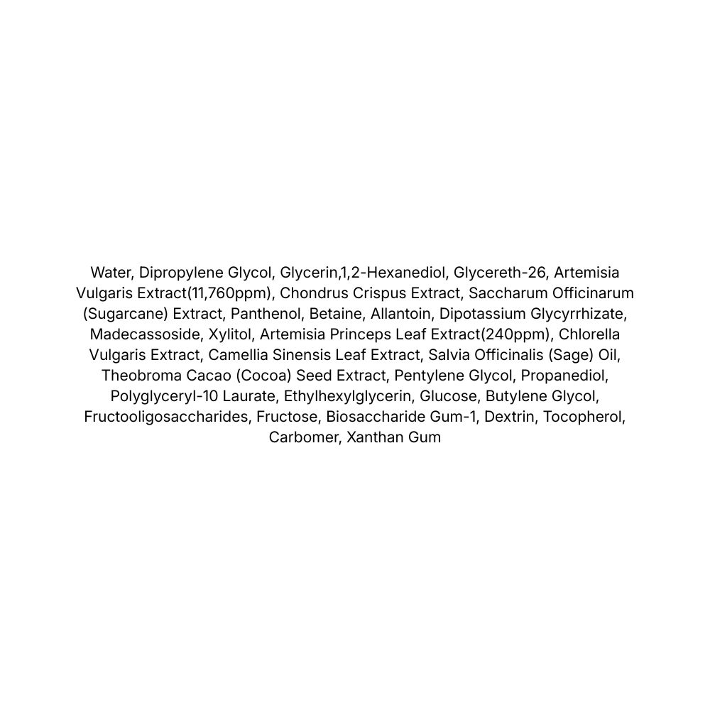 Extract de Artemisia Vulgaris (10.000 ppm) – extract de pelin coreean recunoscut pentru proprietățile intense de calmare. Bogat în vitamine A și B, beta-caroten și antioxidanți care reduc roșeața și liniștesc pielea reactivă.