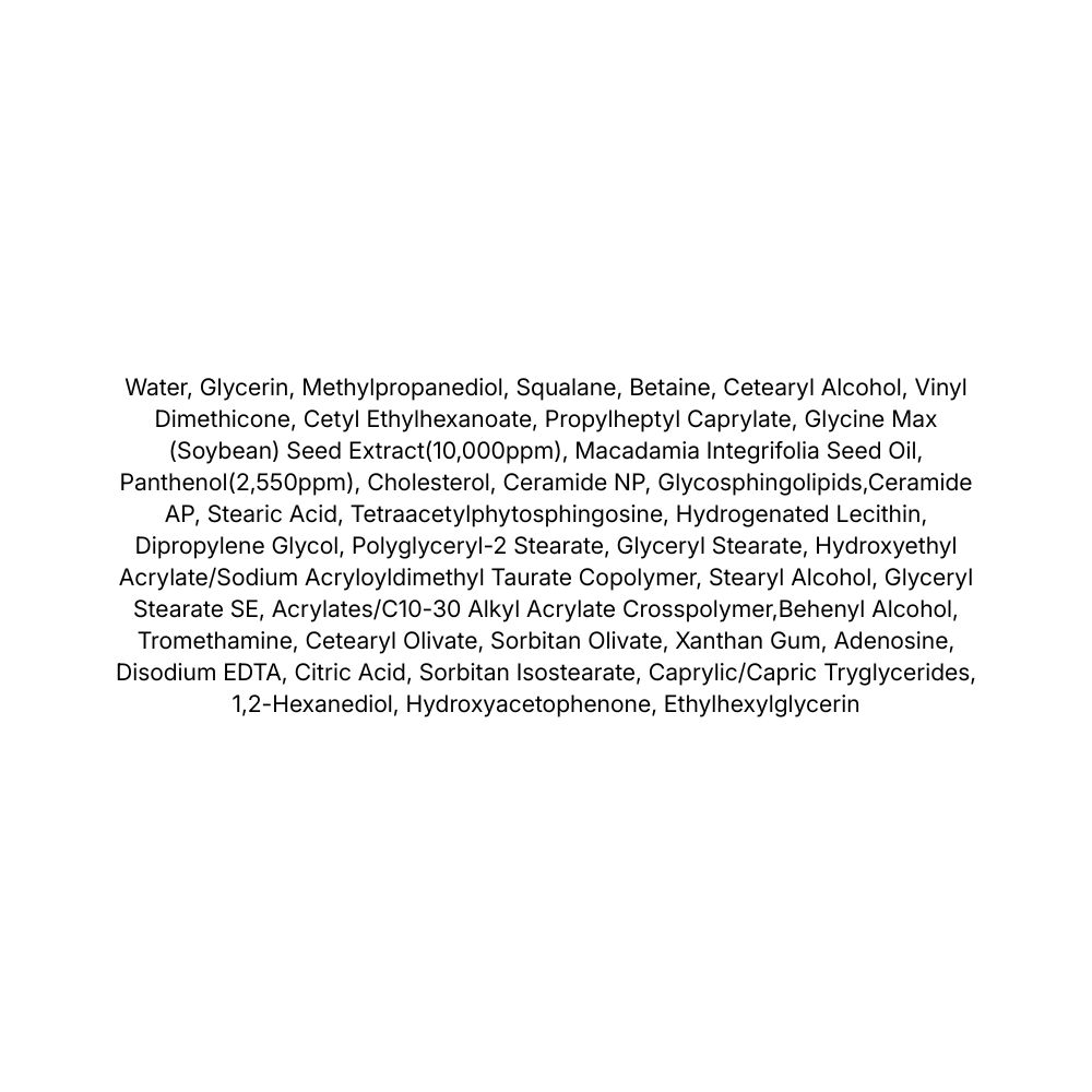 - Glycine Max (Soybean) Seed Extract (10,000 ppm) – ajută la uniformizarea tonului pielii și susține un aspect luminos, datorită conținutului de antioxidanți.
