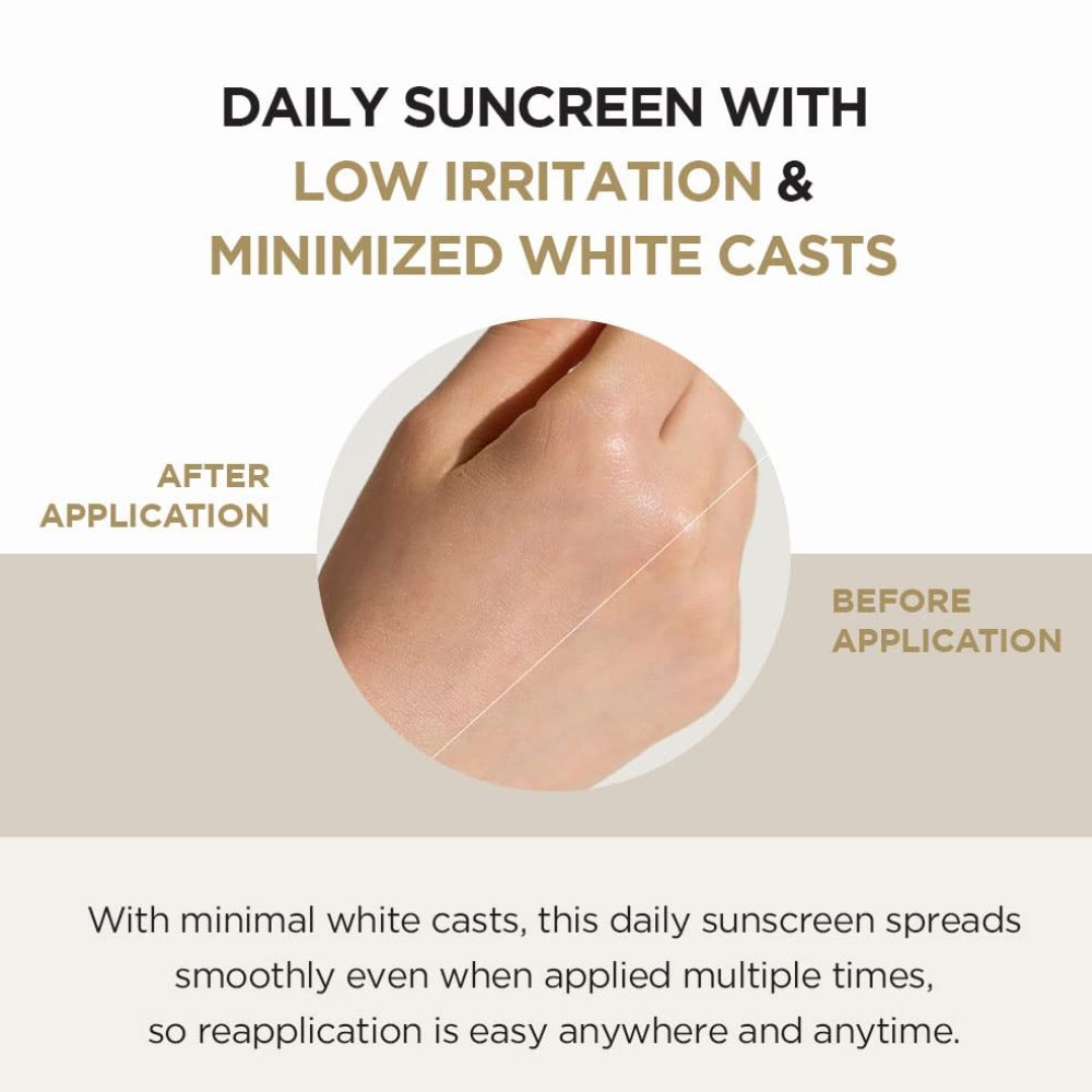 Aplică produsul uniform pe față și gât, ca ultim pas al rutinei de îngrijire de dimineață. Reaplică la fiecare 2-3 ore sau după contactul cu apa ori transpirație intensă, pentru o protecție optimă.