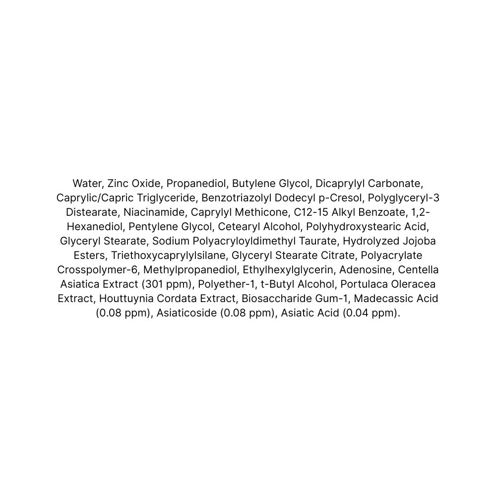 Conține extract de Centella Asiatica (29.400 ppm), recunoscut pentru proprietățile sale calmante și antiinflamatoare, ce reduc roșeața și senzația de disconfort.