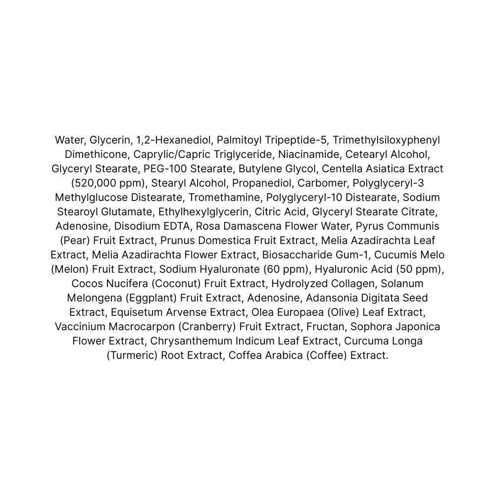 Centella Asiatica Extract (520,000 ppm): bogat în madecassoside și asiaticoside, calmează iritațiile, reduce inflamațiile și accelerează regenerarea pielii.