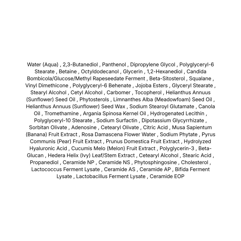 Ceramide NP, NS, AS, AP și EOP – complexe de ceramide care întăresc bariera pielii și reduc sensibilitatea.