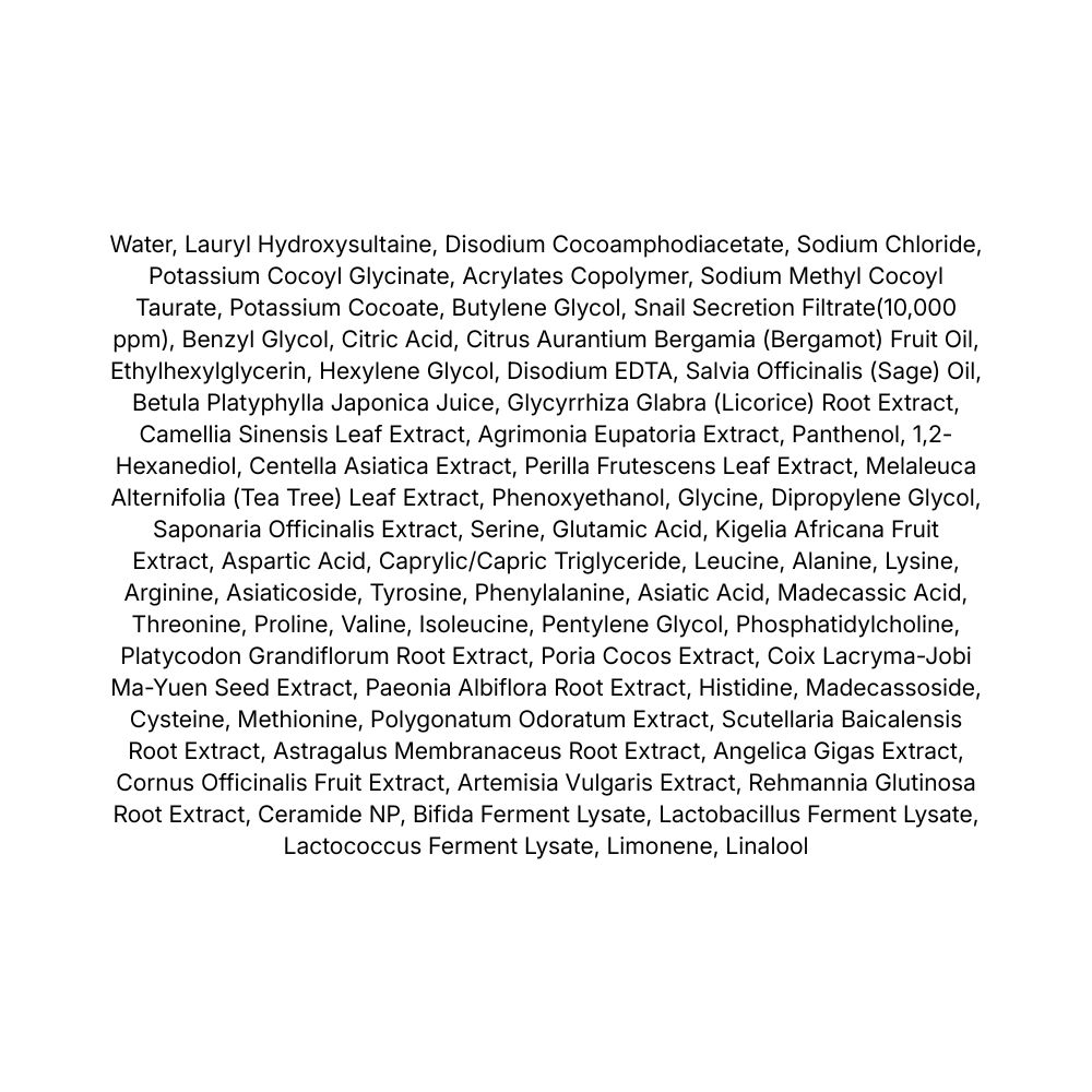 Extracte botanice (salvie, ceai verde, lemn-dulce, perilla, tea tree, agrimonia, artemisia etc.) – contribuie la detoxifierea pielii, reduc iritațiile și sprijină procesul natural de regenerare.